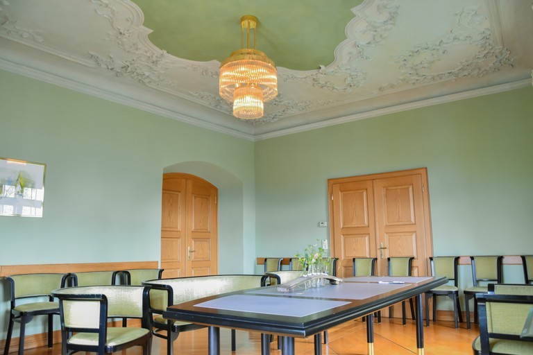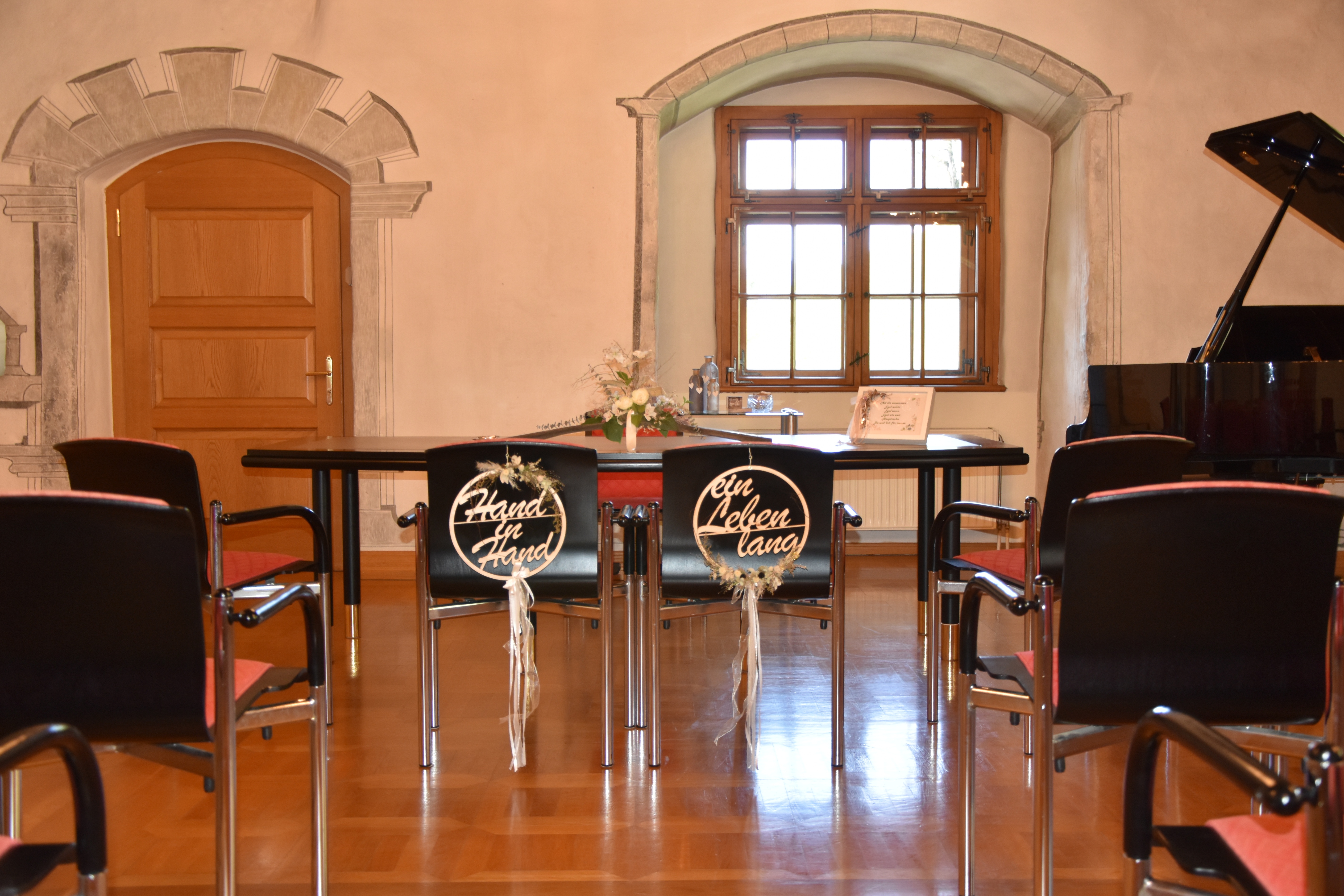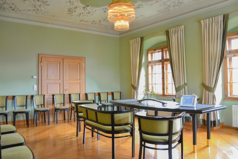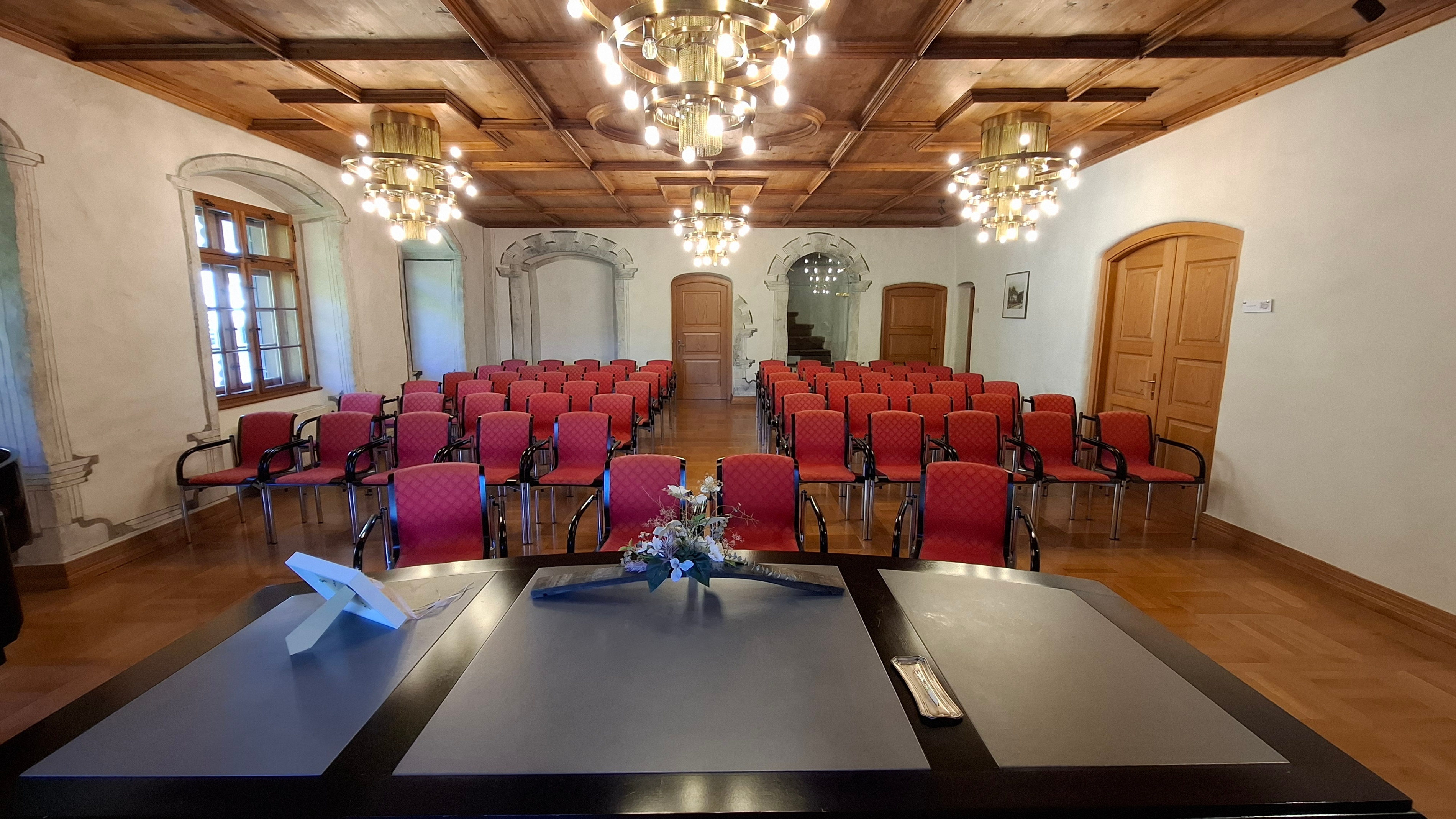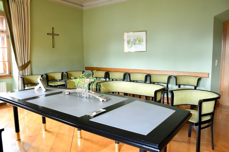 Der Trauungsraum befindet sich im 2. Obergeschoss und ist barrierefrei (Lift) erreichbar. Der Raum bietet Platz für 20 Sitzplätze.