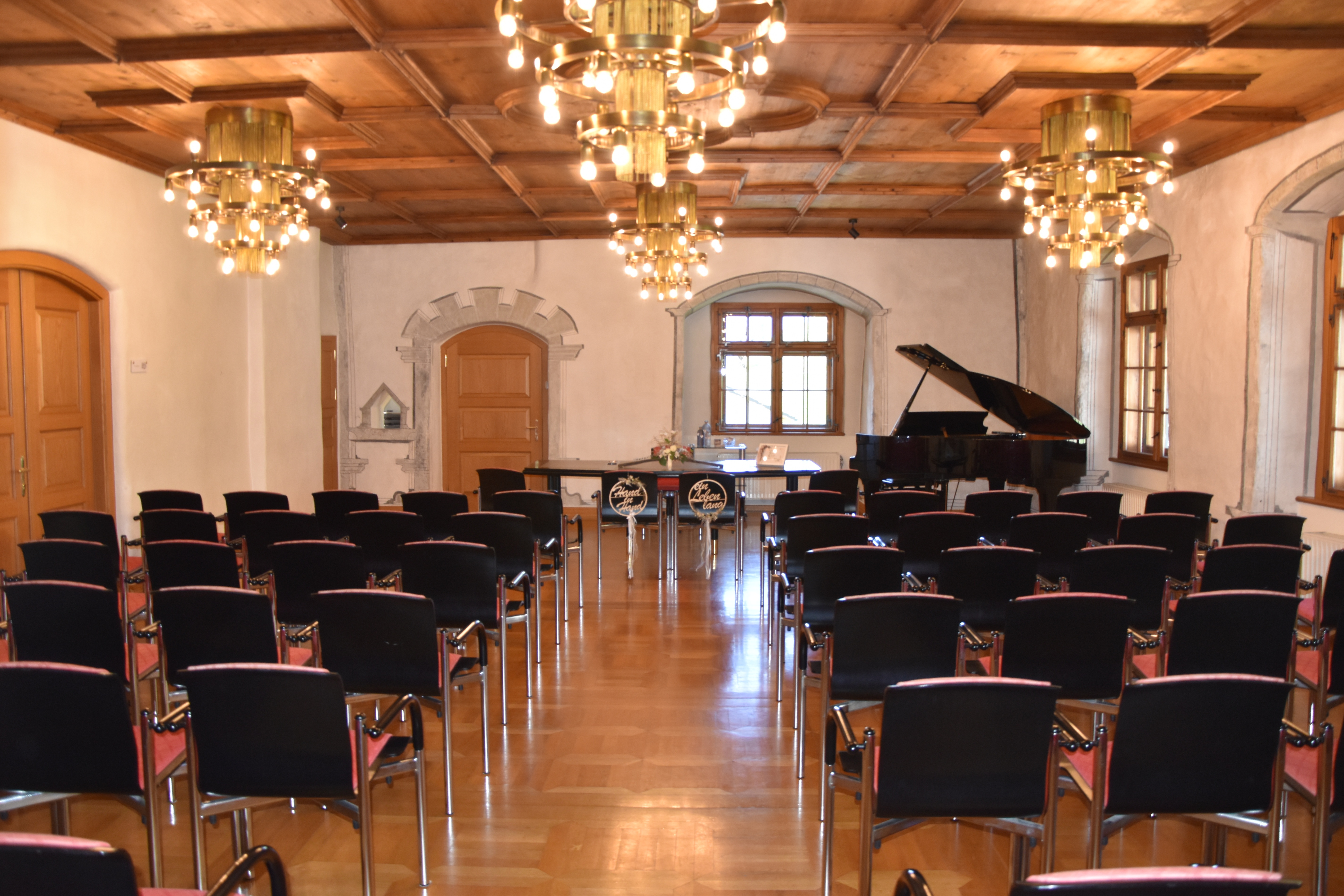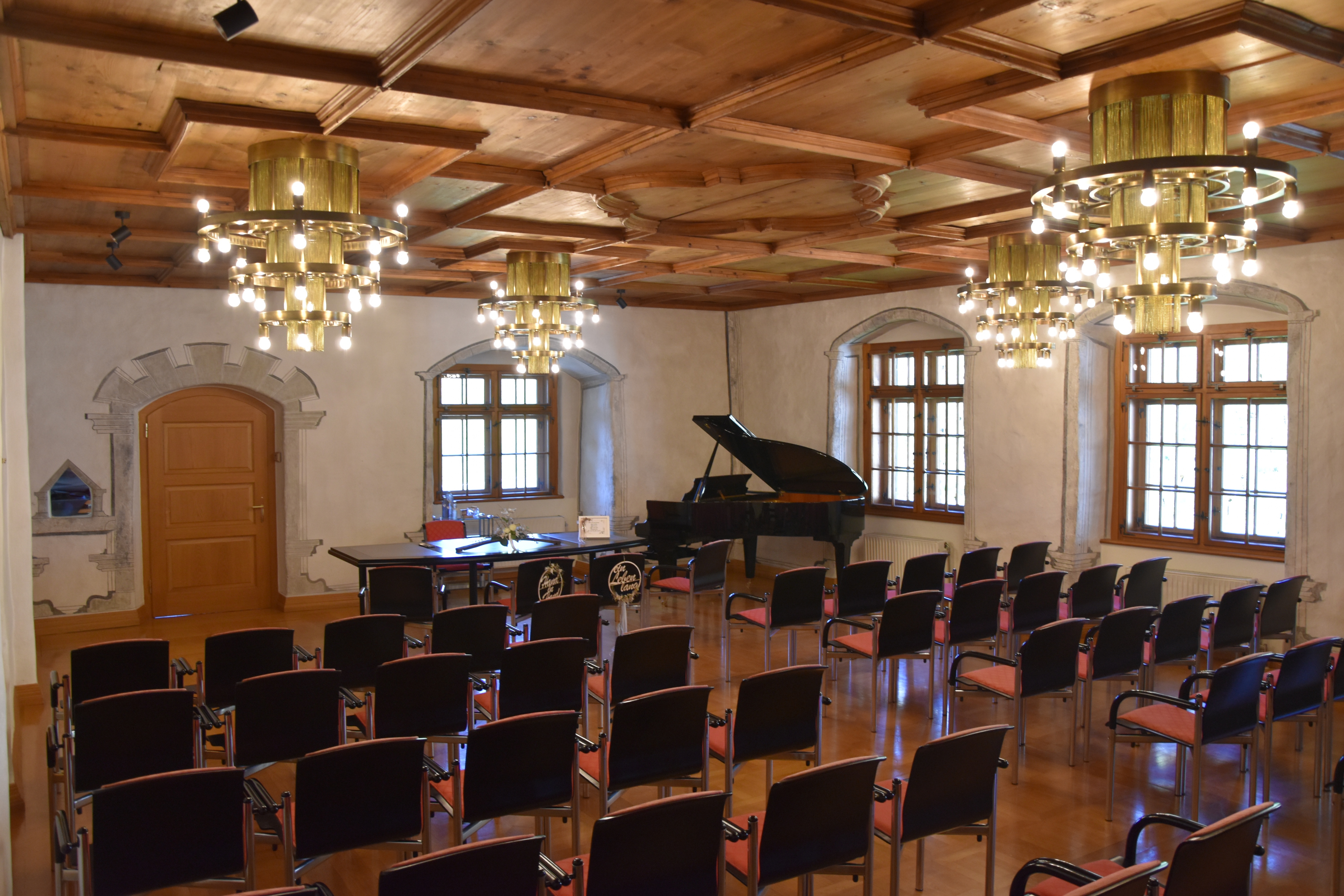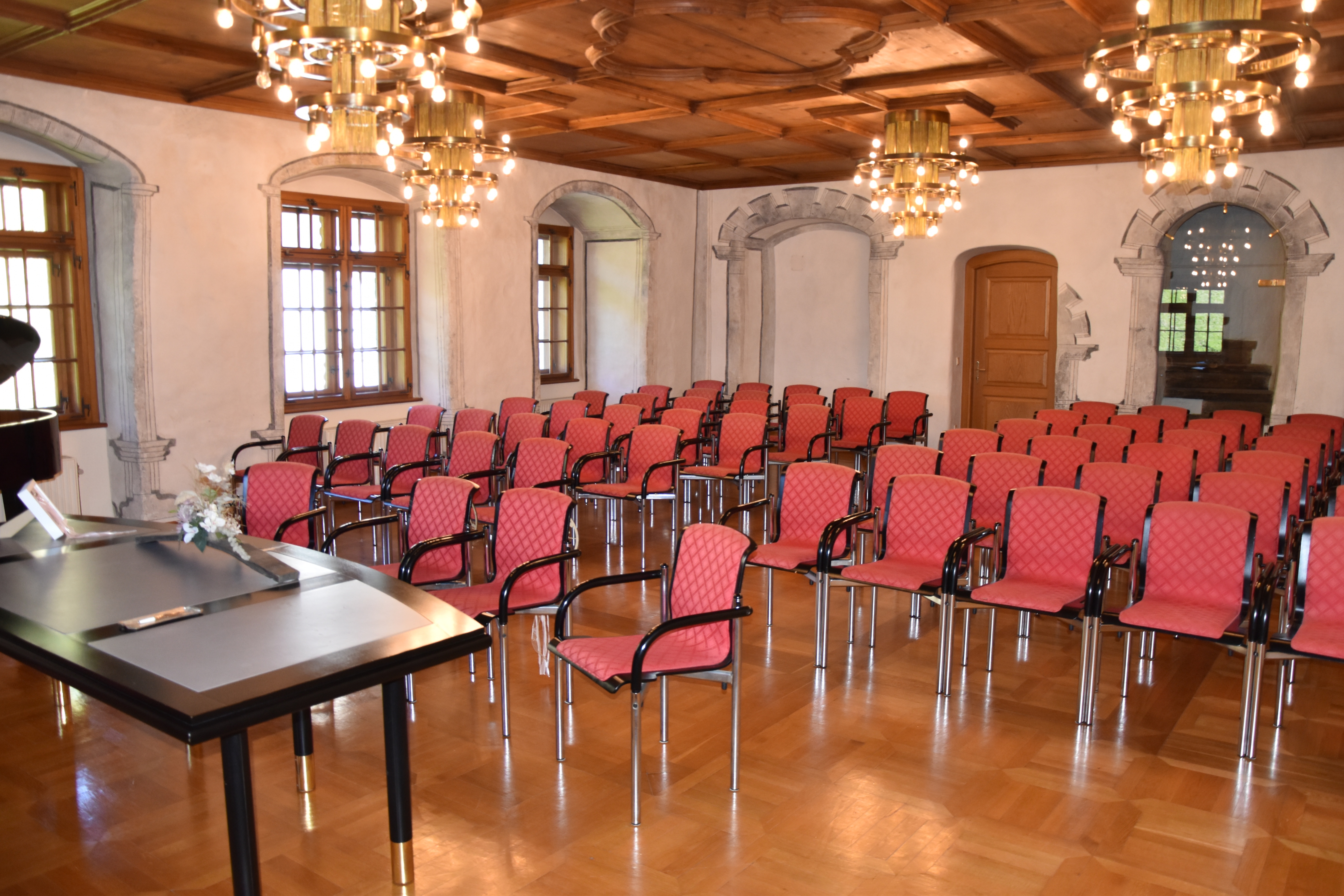 Der Trauungsraum befindet sich im 2. Obergeschoss und ist barrierefrei (Lift) erreichbar. Der Raum bietet Platz für 20 Sitzplätze.
